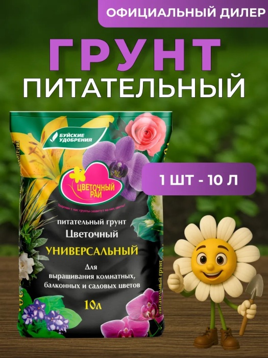 Грунт "Цветочный рай" универсальный — это питательная почвосмесь, предназначенная для полноценного роста и развития широкого спектра растений. Подходит для использования в качестве грунта для цветов, декоративно-лиственных культур, а также как грунт для комнатных растений и уличных посадок. Благодаря сбалансированному составу и стабильным агрофизическим характеристикам, этот почвогрунт для посадки цветов обеспечивает растениям необходимые условия на всех этапах роста.