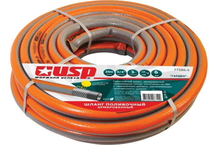 Трехслойный поливочный шланг Usp ГАРДЕН 3/4"х 25 м 77285-4 - незаменимый помощник для полива растений на садовых и огородных участках.