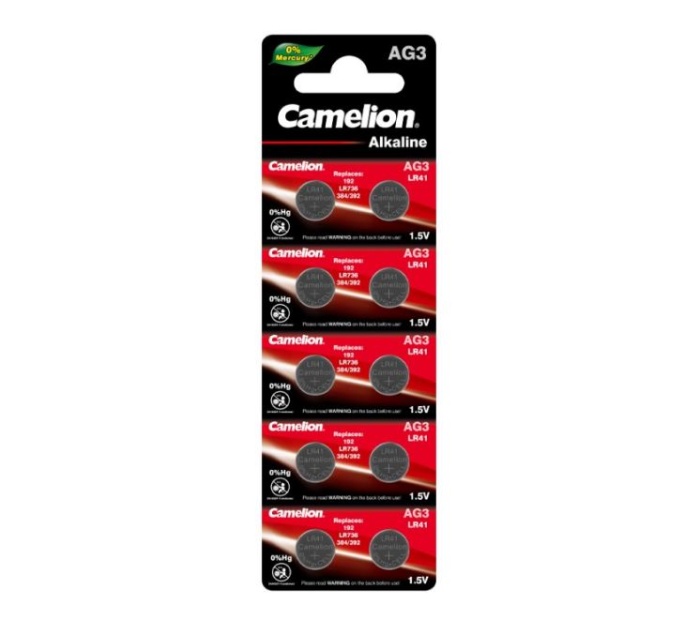 Дисковые щелочные батарейки предназначены для широкого спектра устройств (наручные часы, лазерные указки, игрушки, фонари). Батарейки Camelion G3, напряжение 1,5 В, емкость 41 мА*ч, использовать при температуре от -18 до +55°C, хранить при температуре от +15 до +25°C. Размер упаковки 50x160x5 мм. Срок хранения 5 лет. Все батарейки торговой марки Camelion сертифицированы согласно российскому стандарту ГОСТ.