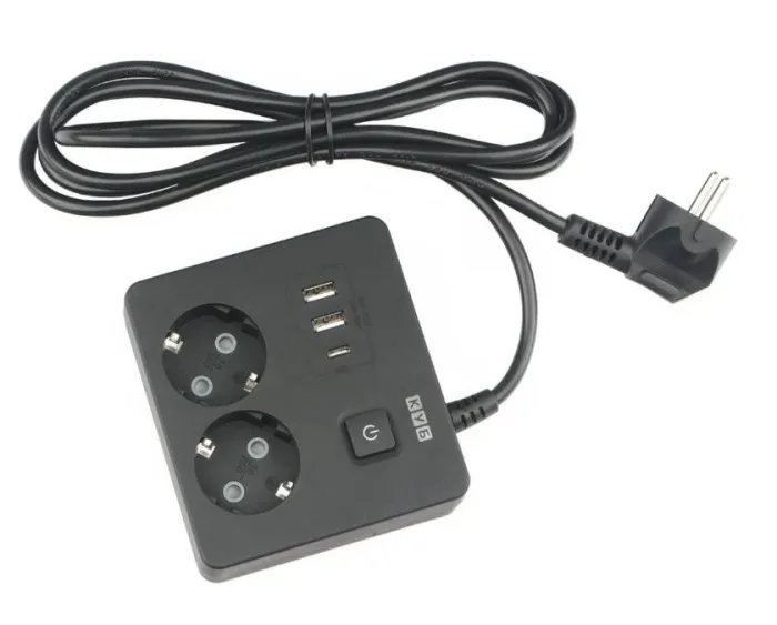 Удлинитель имеет 2 розетки с заземлением и 3 порта USB с быстрой зарядкой (2 порта USB-Type A + 1 порт USB Type-C). Все розетки удлинителя имеют защитные шторки, предотвращающие случайное проникновение к токопроводящим элементам и защищающие от попадания внутрь мелких частиц пыли, воды и грязи.
