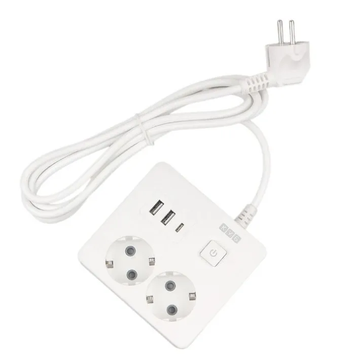 Удлинитель имеет 2 розетки с заземлением и 3 порта USB с быстрой зарядкой (2 порта USB-Type A + 1 порт USB Type-C). Все розетки удлинителя имеют защитные шторки, предотвращающие случайное проникновение к токопроводящим элементам и защищающие от попадания внутрь мелких частиц пыли, воды и грязи.