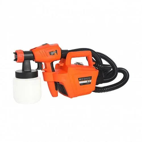 Данная модель отличается экономичностью, эффективным переносом краски и высоким качеством окрашивания поверхности. Блок с компрессором можно расположить на полу или повесить его на плечо на ремне, входящем в комплект.