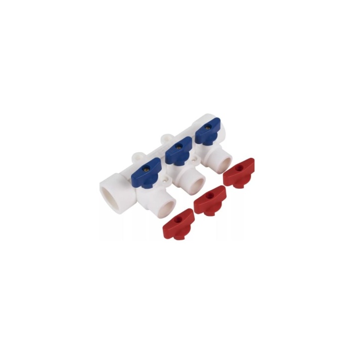 На отводах установлены краны с шаровыми элементами, выполненными из хромированной стали.
