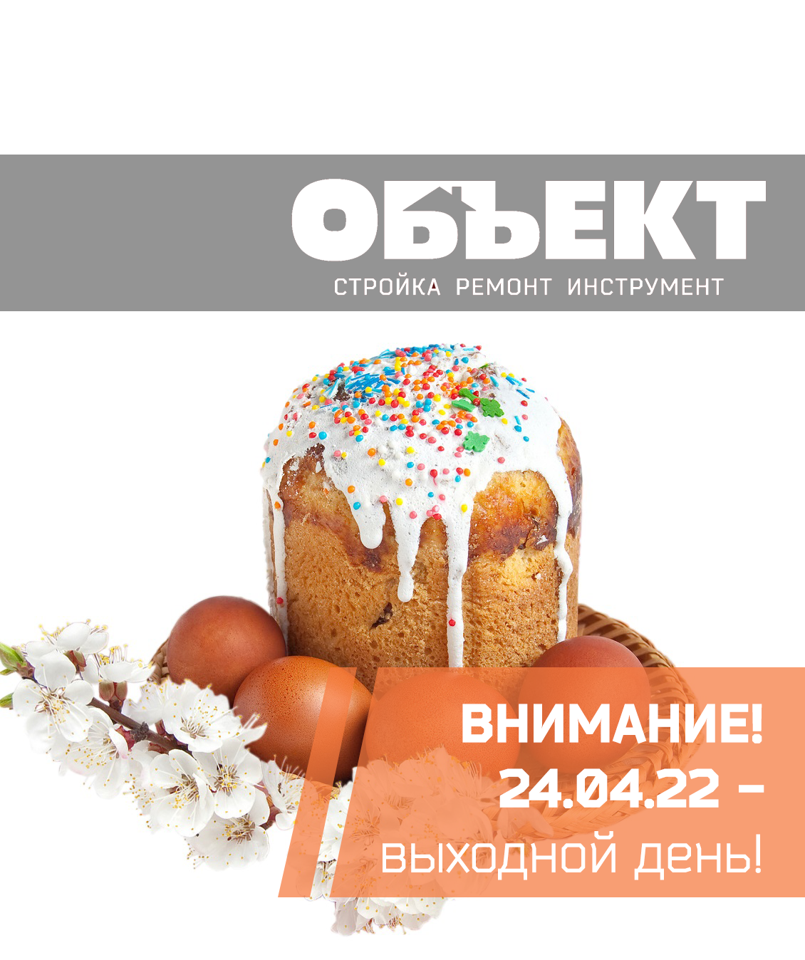 Доводим до Вашего сведения, что 24.04.2022 г. во всей сети строительных материалов "ОБЪЕКТ" - выходной день.